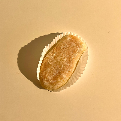 A whole slice of juicy mango,encased in a layer of soft and chewy mochi.